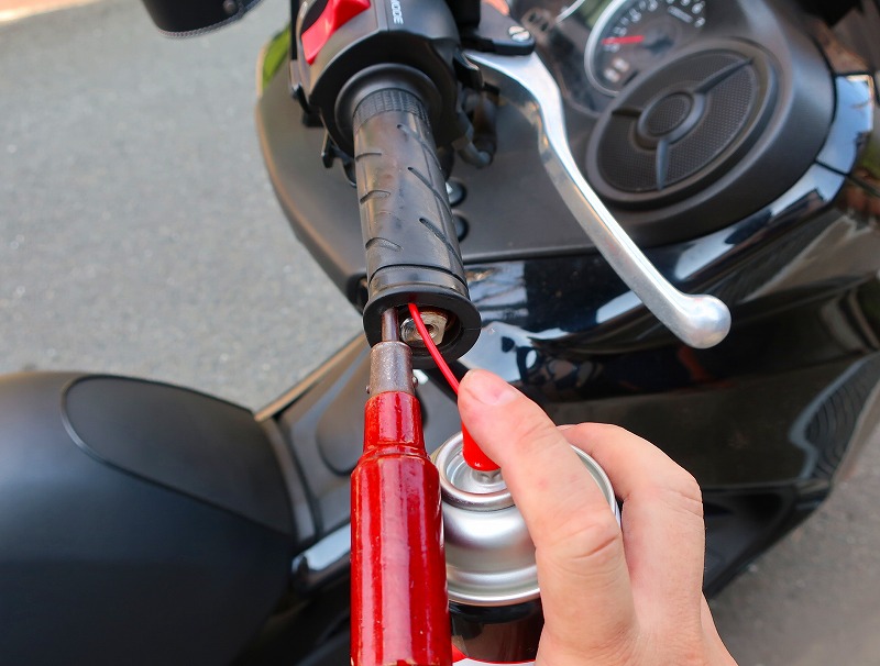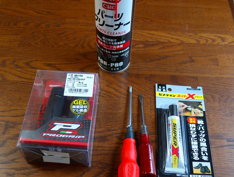 パーツクリーナー、今付いてるグリップを外す時に必要で付ける時にはちょっと塗っておくと付けやすい