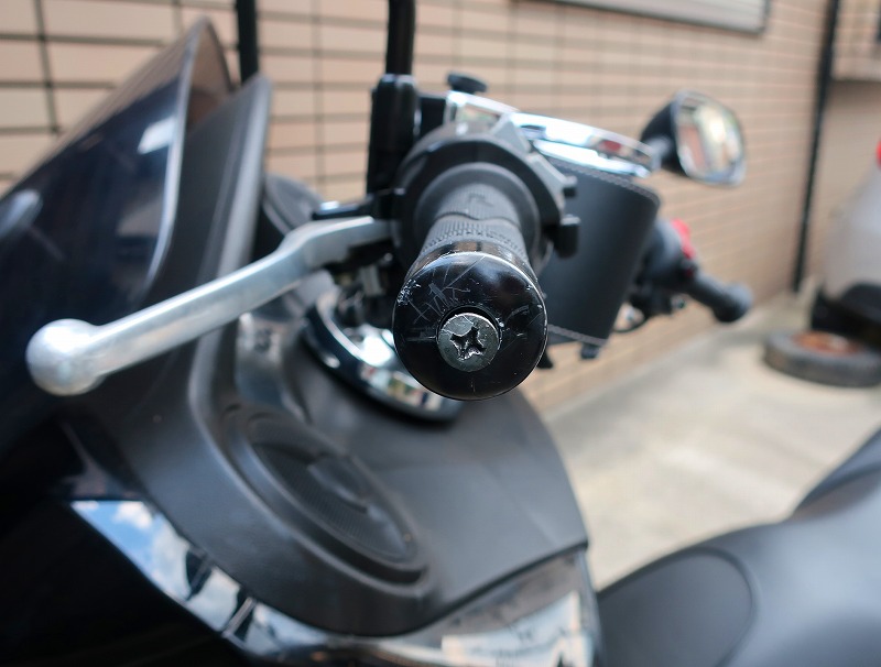 バーエンドを止めてる形状を確認、フォルツァはプラスネジでしたが、六角のネジパターンもある