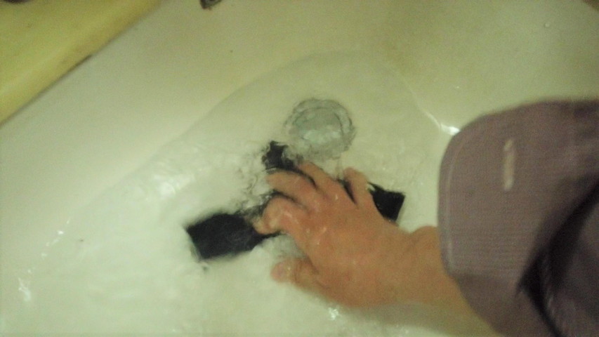 軽く水洗いしてから、洗剤を入れる揉むように洗うと