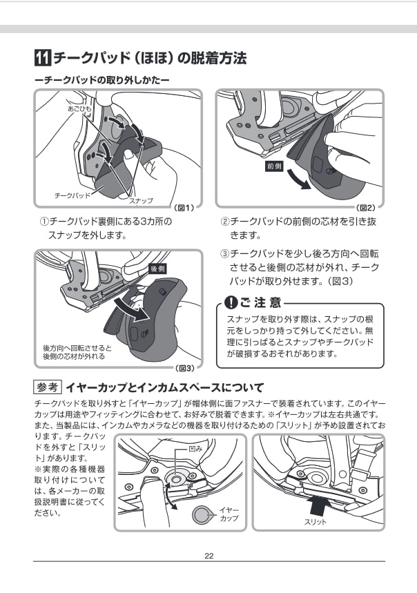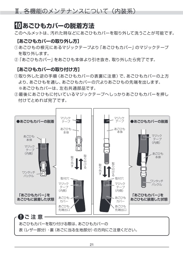 ダウンロードした説明書にあごひもカバーの外し方が載ってました