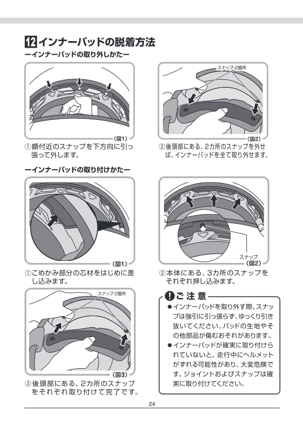 大体のやり方が知りたかったのでOGKの公式サイトから、ヘルメットパッドの外し方をダウンロードしました ↓