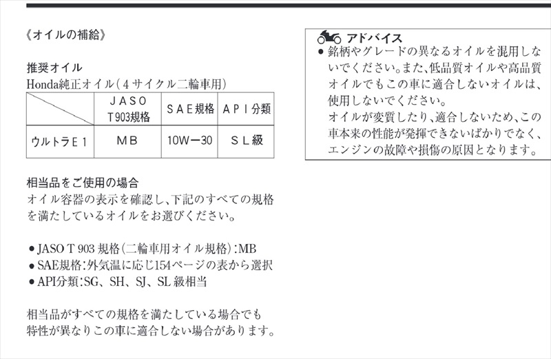 ※最近の説明書では ホンダ ウルトラS が推奨品になってますね