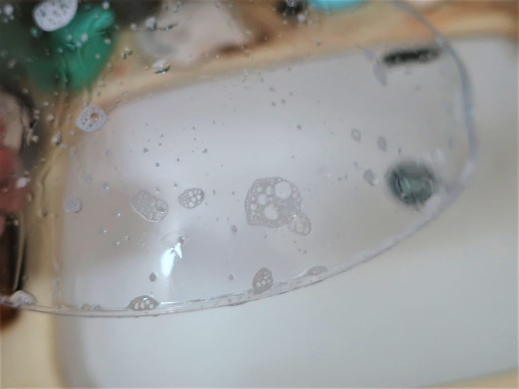 最初は、ピンロックシートに食器用洗剤を直接垂らして水道水で流す