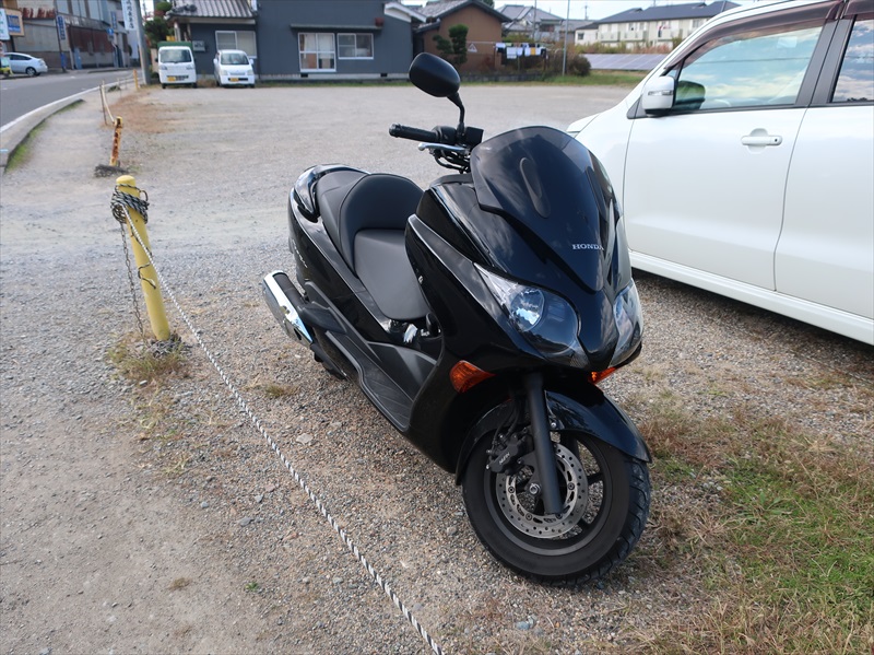 砂利の駐車場にバイクを停めて7~8分ほど歩くと参道の手前に駐輪場がありました、駐車場もありました