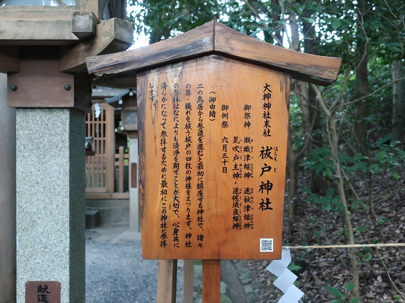 拝殿の手前にあるお社が祓戸神社、諸々の罪や穢れを払う為の四柱の神様がお祀りされていて、最初に参拝するように書かれていました