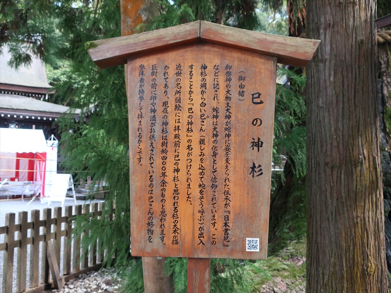 巳の神杉、御祭神の大物主大神が蛇に姿を変えたと書かれてました