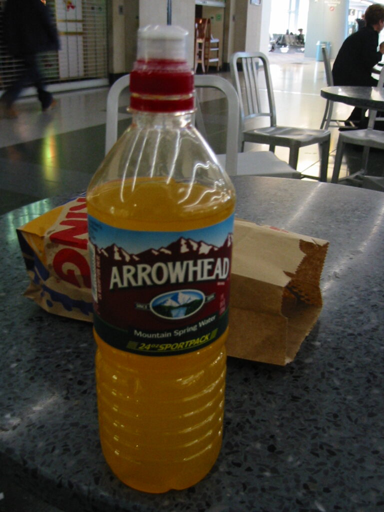 これまで、どおもミネラルウォーターが口に合わないので、途中で買ったミネラルウォーターの空きボトルにスポーツ飲料を入れて飲んでいたがこのボトルも、もう要らないのでここでゴミ箱にほかしてきた