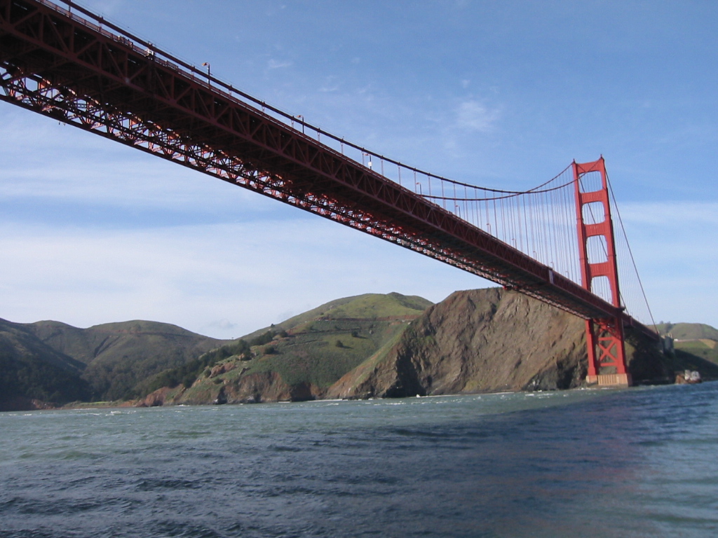 軍艦、潜水艦、帆船の前を通りゴールデンゲートブリッジへ向かう 橋の下をくぐり少し越えたあたりでUターンして