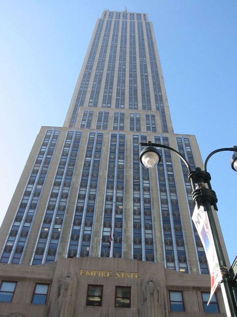 店を出てニューヨーク1高いビルに返り咲いたエンパイヤステートビルに向かう エンパイアステイトビルの真下に来ました