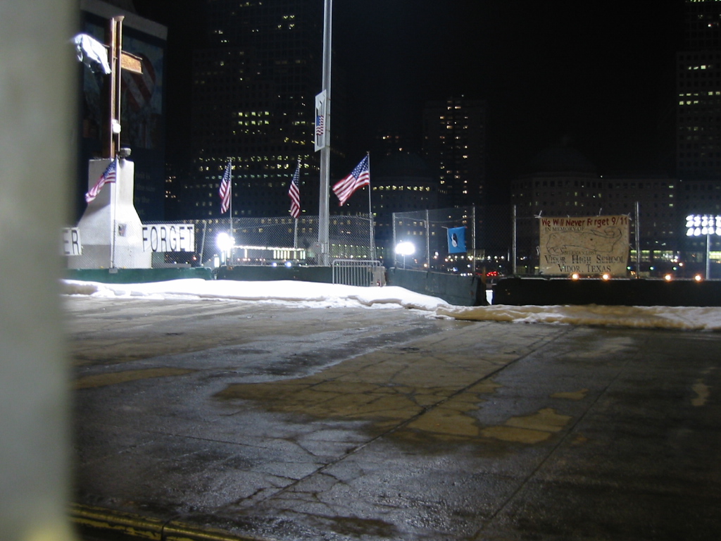 ミュージカルは見ずに夜のグランドゼロに向かいました あまり人も居なくてそこだけが、照らされていてすごくもの悲しい雰囲気でした、だめ元でデジカメで撮ってみるとなんとか数枚撮れましたがここでバッテリーが全く無くなってしまいました