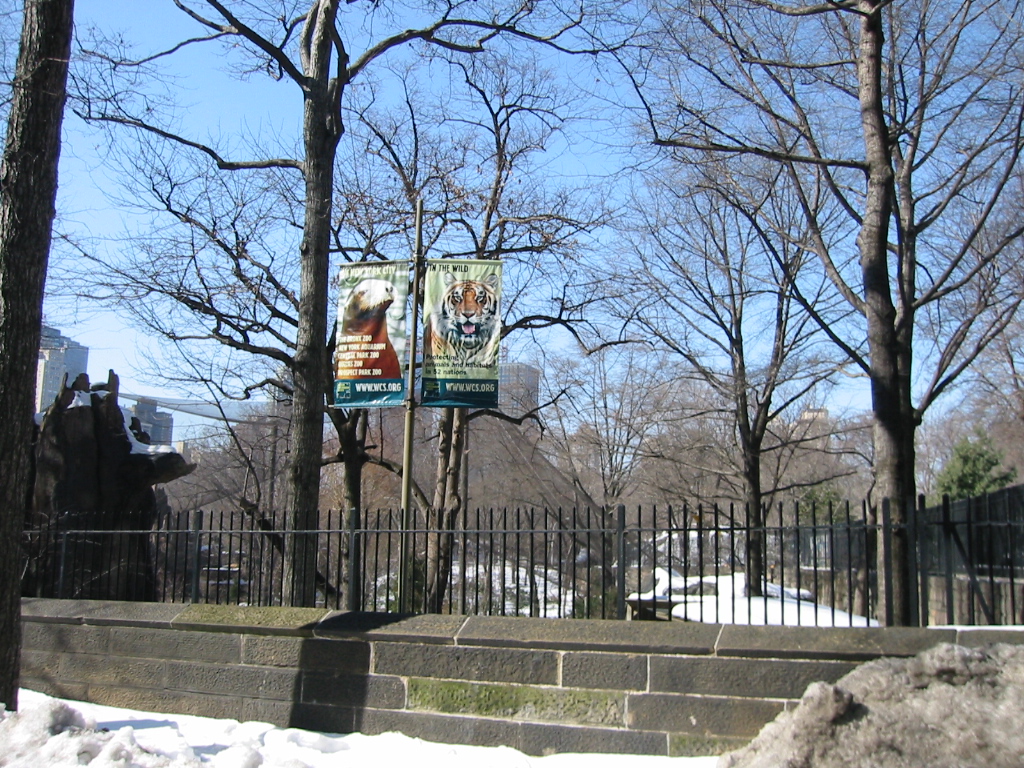 雪道をメトロポリタン美術館に向かう、ニューヨーカーがセントラルパークでどのように、過ごしてるのか見たかったので、バスにも乗らずに除雪していない道を歩いていくと「ZOO」の文字が見えた ほんとに動物園で虎やアザラシの旗も見えた