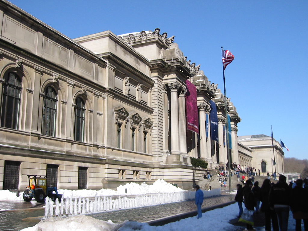 ニューヨークは観測史上3、4番目の寒さで公園内の池も凍ってました、その池をわざわざ歩いてる人がいたようです 美術館に近づくと人が表に溢れてました