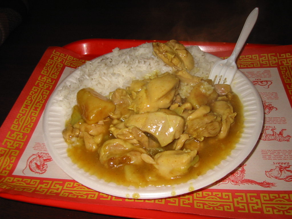 今回初めてバスに乗ってエンパイヤビルに上るがお腹の空いてきたので、ファーストフード風のチャイナレストランに入った 店の女の子が愛想良く応対してくれた、メニューが英語で発音が悪いので注文し易いチキンカレーにした、チキンの量が多い・・、