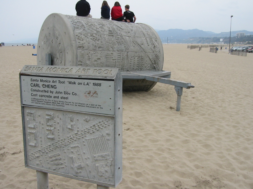 巨大ローラーが置いてありよく見ると砂の上の絵を描く為のようだ