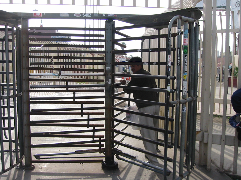 200m程先には遊園地の出口にあるような、ぐるぐる回るゲートが見えてきたので写真を撮っていると後ろから来たメキシコ人は、手提げビニール袋を持って歩いて行った。