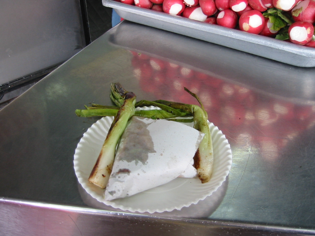 出てきたタコスにはネギは2本付いてきた一緒に食べるみたいだ