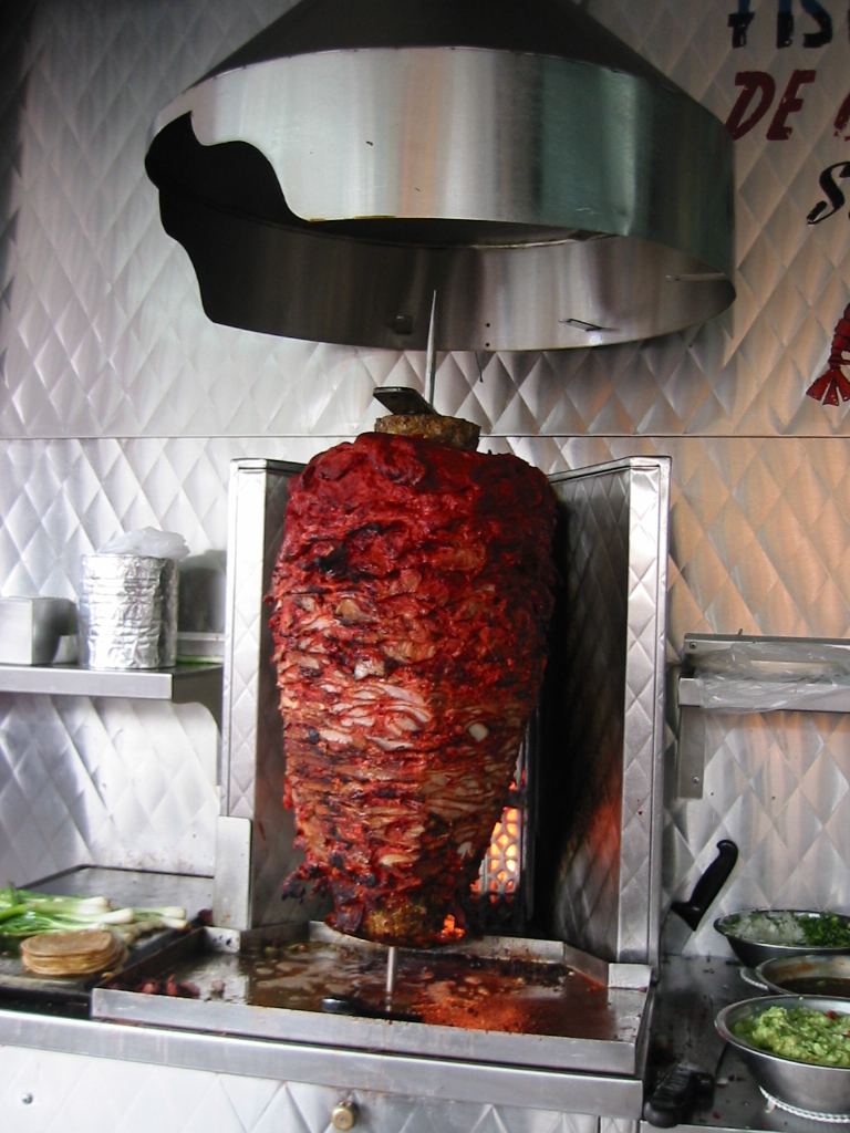 タコスを言うと中の具を聞いてきたらしいがスペイン語はわからないがつり下げている肉のかたまりを指さして何か言ってくるのでOKと答える