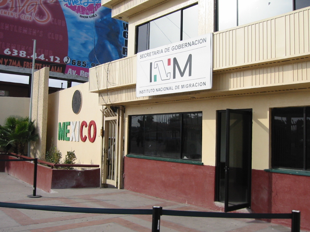 門をくぐるとそこはメキシコ、MEXICOの文字とDE MIGRACIONの文字がたぶんイミグレイションでは?