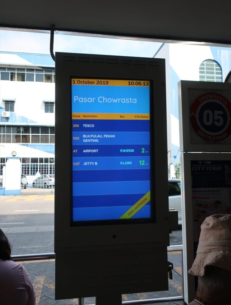 次のバス停は電光掲示板があるし、2分後にairportって書いてある