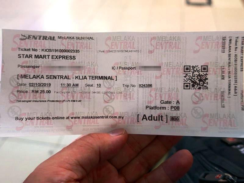 (マラッカバスターミナルから空港への行き方の詳しくは ↓ )