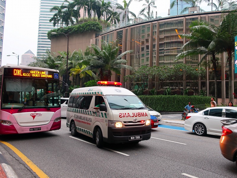 途中救急車が走っていたけど、なぜか文字が裏向きになっている