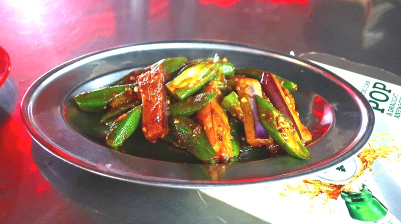 もう一品がマレーシアでよく見かけたオクラ、それとナスの炒めもの