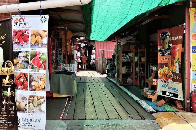 桟橋の初めからお店が続いてます、どこにでもあるような土産物屋や軽食の店がほとんどです