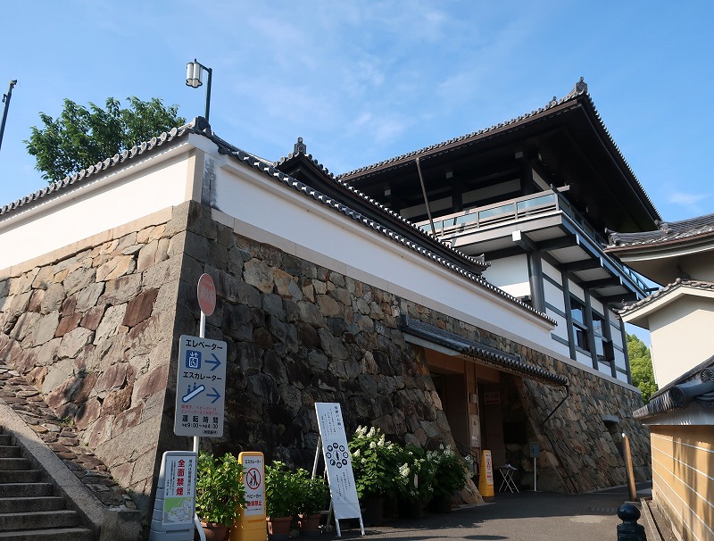 お城の石垣?て思える造りのエレベーター・エスカレーター施設がある