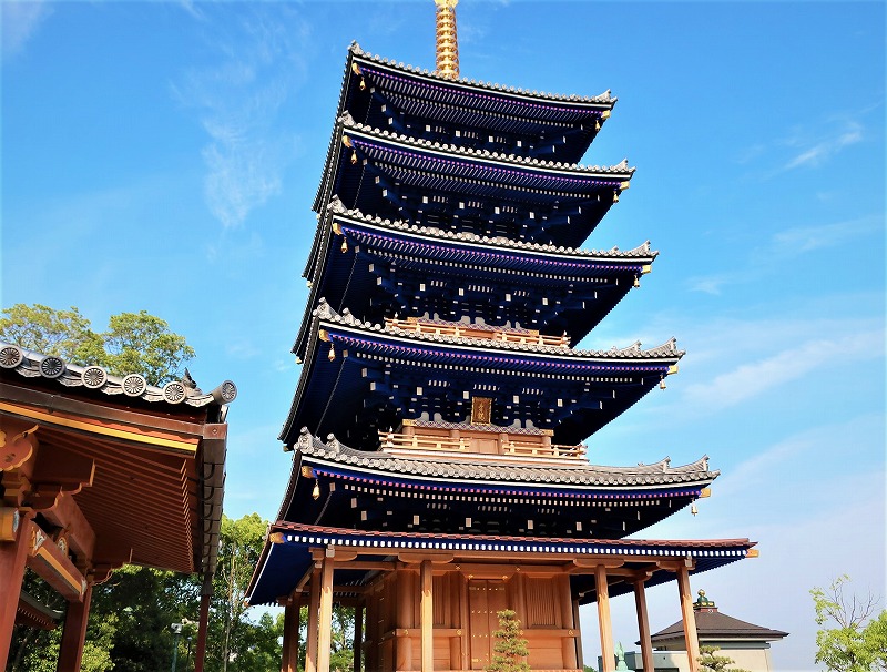 五重塔、ちょっと変わった色に塗られてました