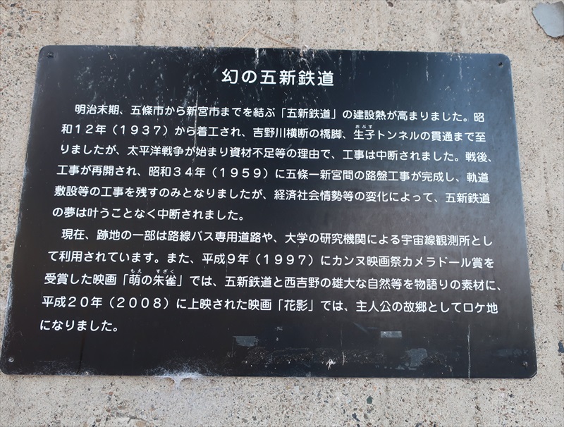 五新鉄道とは、戦前に奈良県五條市から和歌山県新宮市を木材を運ぶ為に結ぶ予定だった、国鉄時代の鉄道路線です