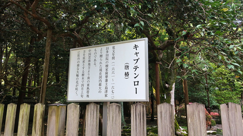 拝殿の横にキャプテンロー(唐椿)が植えられてます、説明文には多田院の檀家であった島津家から送られたとあります、島津家は島津忠久が源頼朝に南九州の島津荘を与えられた事に始まる関係がずっと続いているんですね