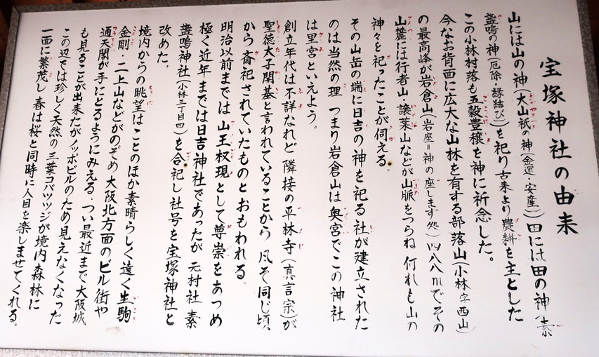 神社名からすると、いにしえの時代から村の中心的な神社かと思ったら、HPには昭和41年に宝塚神社と改めたとありました