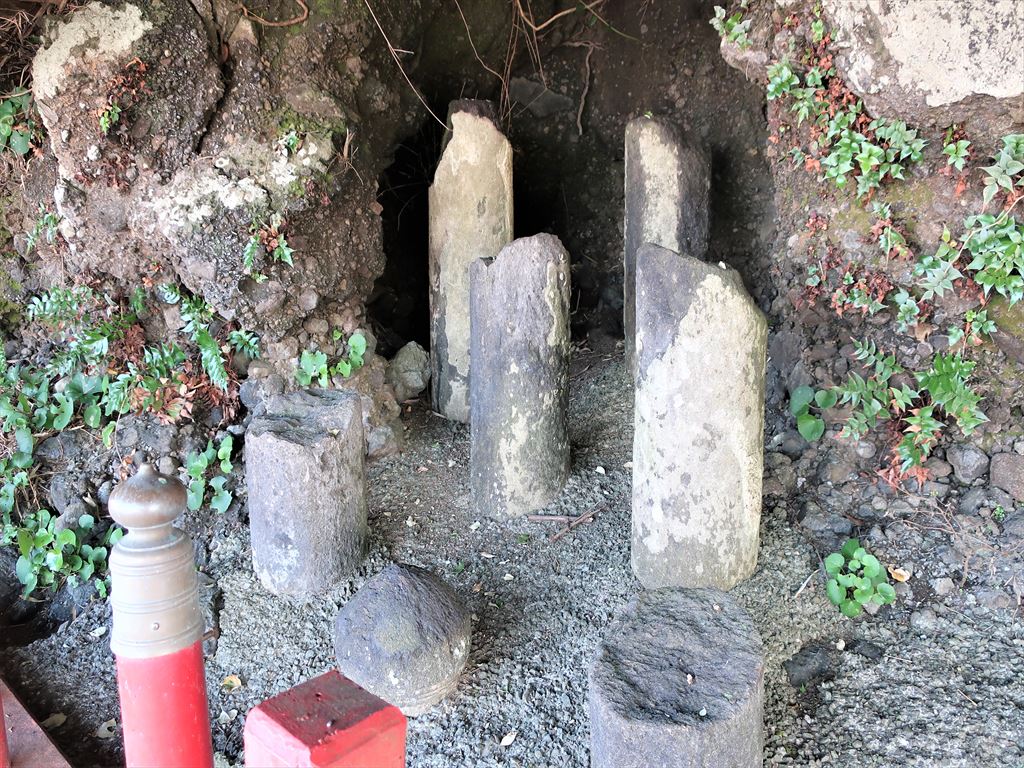 すぐ横に台風で折れた鳥居の石柱が置かれてました