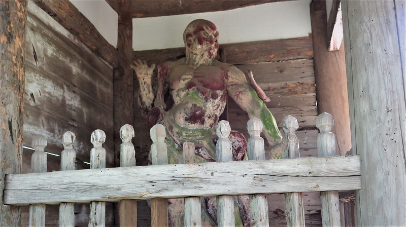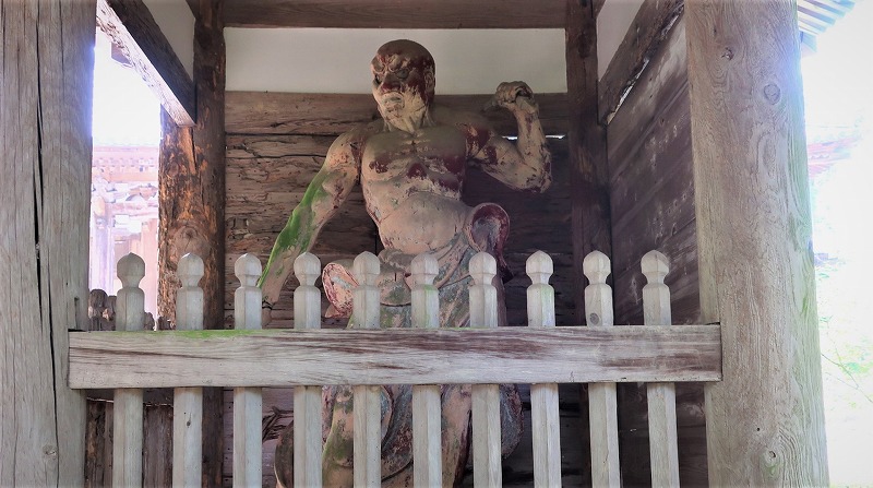 迫力のある仁王像、色あせて苔むしてるのが歴史を感じられます