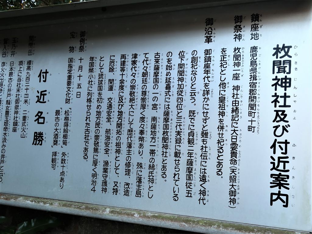 また開聞岳を仰ぎ見る場所にあり、末社が置かれていると書かれているので土着信仰で開聞岳と関係がありそうです
