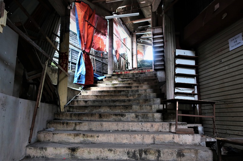 だいぶちょっと怪しい細い路地を入っていきます、この先からは薄暗く