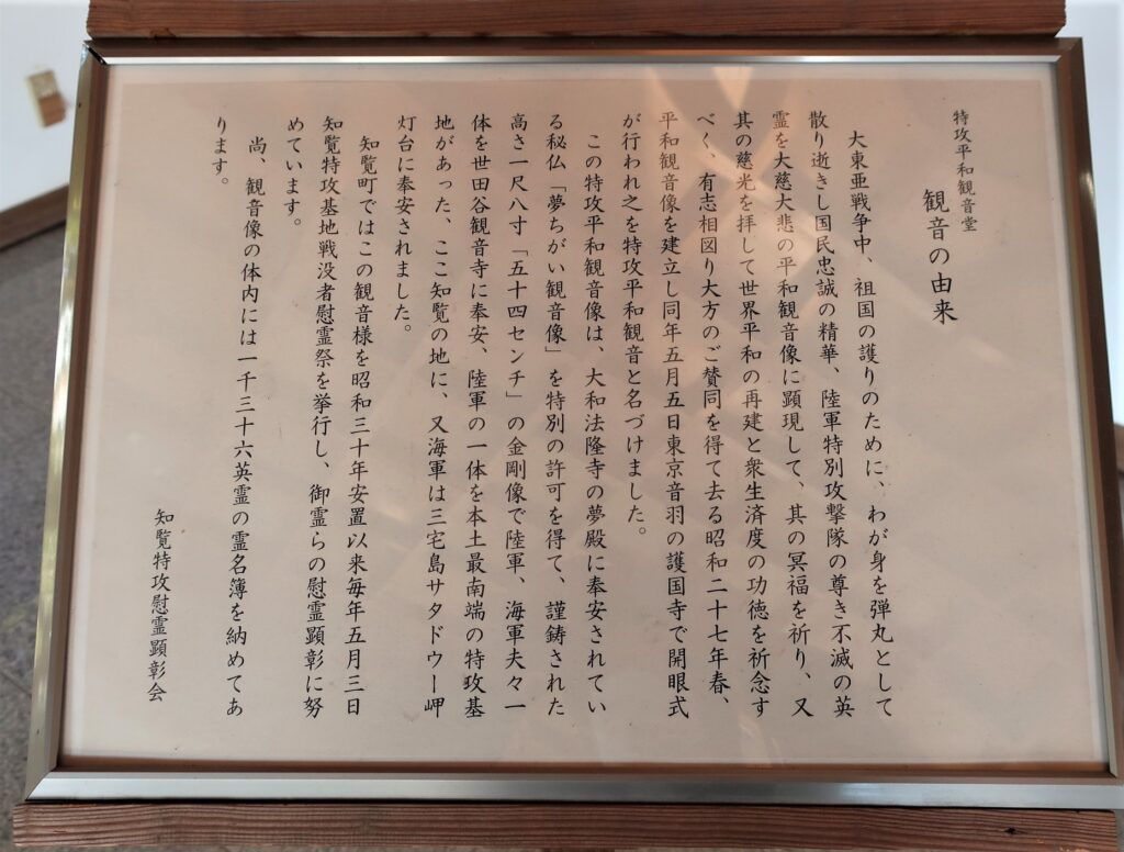 以前訪れていて、内部には特攻隊員の遺影・遺言・遺品が、一日あっても時間が足りないくらい展示されています