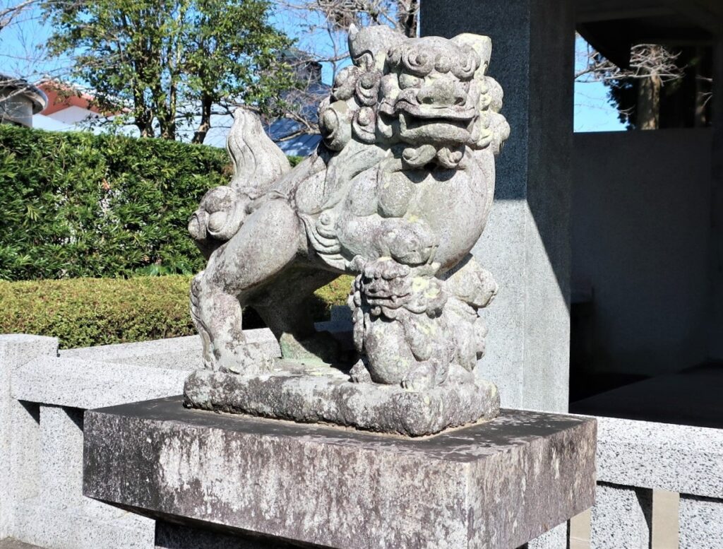 玉に乗ってるのは見かけますが狛犬に乗ってます