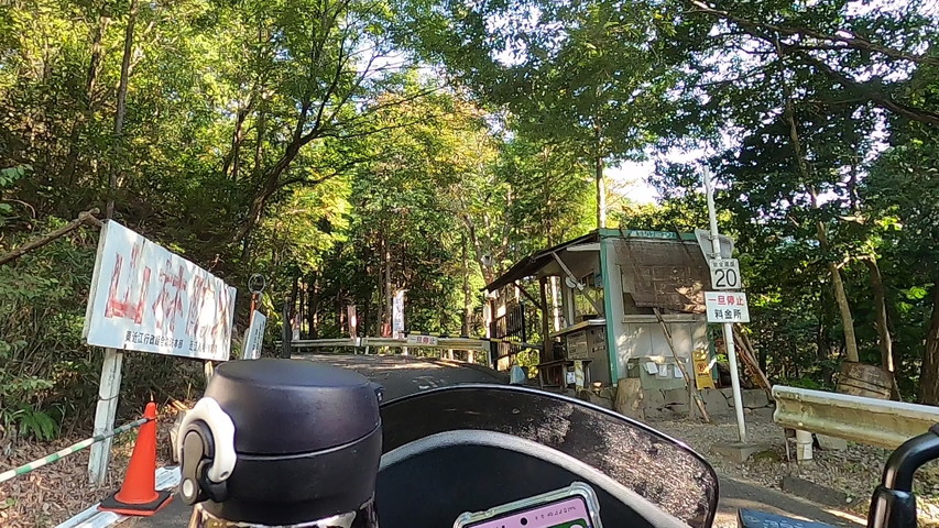車ですと途中で料金所があり自動車600円、二輪車300円をお支払いします