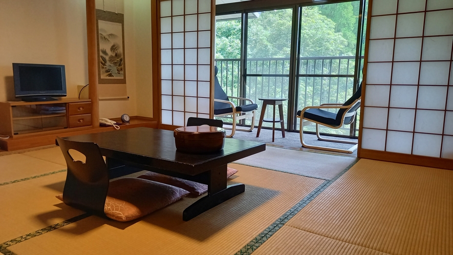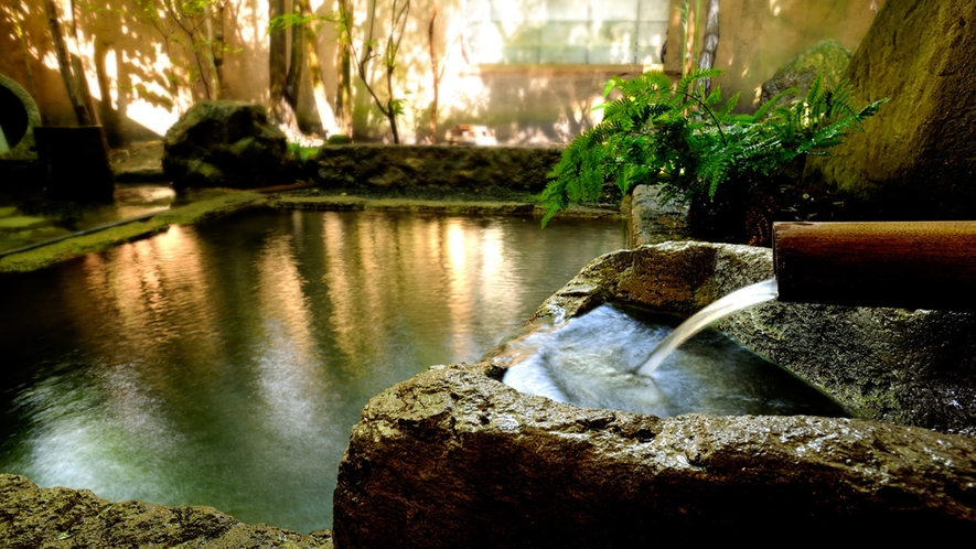 源泉かけ流しの豊かな温泉は、内風呂・露天風呂を全室に完備しており、きらきらとこぼれる木漏れ日や、木々をわたる葉ずれの音の中、贅沢なリフレッシュの時間が過ごせます。