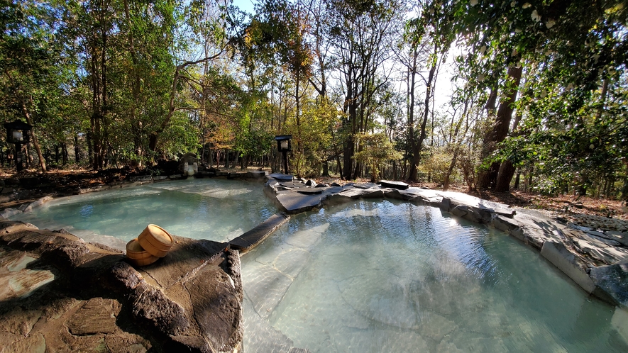 50000坪の自然林に囲まれた温泉宿、二種類の源泉と趣異なるお風呂を堪能できます