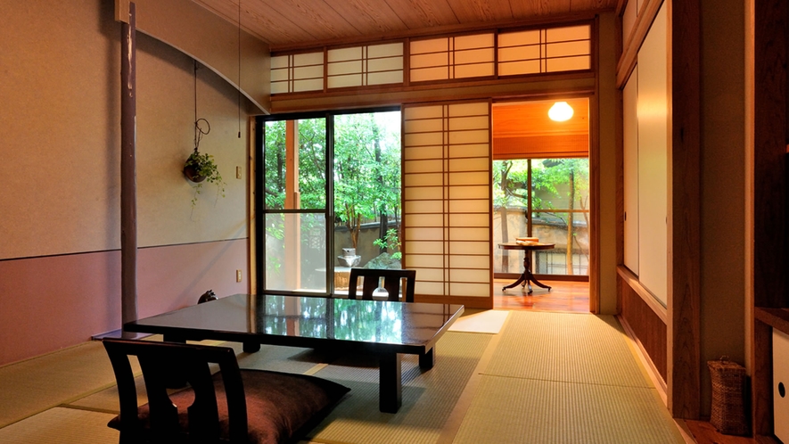 鳥遊ぶ森にたたずむ古民家風、全客室離れの温泉旅館です。