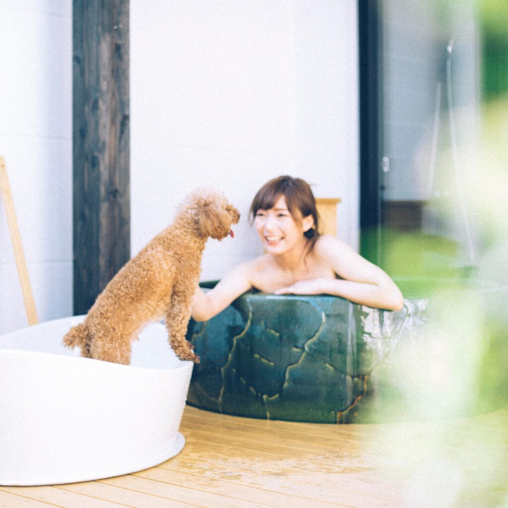 愛犬専用の源泉かけ流し露天風呂が併設されており、鹿児島の自然を感じながら愛犬とのんびり過ごせますし、ドッグランもあります。